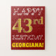 Red, Faux Gold 43rd Birthday + Custom Name Puzzle
