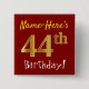 Red, Faux Gold 44th Birthday, With Custom Name 15 Cm Square Badge