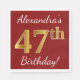 Red, Faux Gold 47th Birthday + Custom Name Napkin