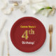 Red, Faux Gold 4th Birthday + Custom Name Paper Plate