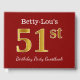 This guest book design features the ordinal number "51st" with a faux/imitation gold-like appearance. It also features a customised name, and a red coloured background. It could be used at a party for somebody celebrating their fifty first birthday. [~Z0000055]