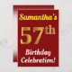 Red, Faux Gold 57th Birthday Celebration + Name Invitation