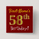 Red, Faux Gold 58th Birthday, With Custom Name 15 Cm Square Badge