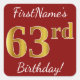 Red, Faux Gold 63rd Birthday + Custom Name Sticker