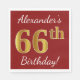 Red, Faux Gold 66th Birthday + Custom Name Napkin