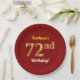 Red, Faux Gold 72nd Birthday + Custom Name Paper Plate
