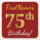 Red, Faux Gold 75th Birthday + Custom Name Square Paper Coaster