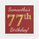 Red, Faux Gold 77th Birthday + Custom Name Napkin
