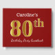 This guest book design features the ordinal number "80th" with a faux gold-like appearance. It also features a customised name, and a red coloured background. It could be used at a party for somebody celebrating their eightieth birthday. [~Z0000055]