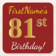 Red, Faux Gold 81st Birthday + Custom Name Square Paper Coaster