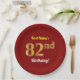 Red, Faux Gold 82nd Birthday + Custom Name Paper Plate