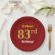 Red, Faux Gold 83rd Birthday + Custom Name Paper Plate