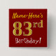 Red, Faux Gold 83rd Birthday, With Custom Name 15 Cm Square Badge