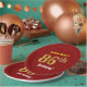 This simple, customisable, birthday-themed paper plate design features a customisable message like "Custom-Name’s 86th Birthday!", where the name can be changed, and with the "86th" having a faux/imitation gold-like appearance. It also features a red coloured background. Paper plates like these could perhaps be used at a party being held to celebrate somebody’s eighty sixth birthday. [~Z0000144]