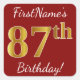 Red, Faux Gold 87th Birthday + Custom Name Sticker