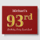 Red, Faux Gold 93rd Birthday Party + Custom Name Guest Book