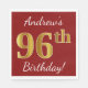 Red, Faux Gold 96th Birthday + Custom Name Napkin