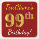 Red, Faux Gold 99th Birthday + Custom Name Square Paper Coaster
