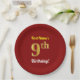 Red, Faux Gold 9th Birthday + Custom Name Paper Plate