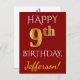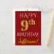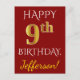 Red, Faux Gold 9th Birthday + Custom Name Postcard