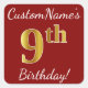 Red, Faux Gold 9th Birthday + Custom Name Sticker