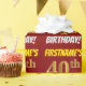 This wrapping paper design features a message like "FIRSTNAME’S 40th BIRTHDAY!", with the "40th" having a faux/imitation gold-like colour appearance, and with the name and "BIRTHDAY" in a fun, bold font. The name is customisable, and the background is coloured red. Wrapping paper like this could perhaps be used when wrapping birthday gifts being given to somebody in celebration of their fortieth birthday. [~Z0000204]