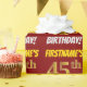 This wrapping paper design features a message like "FIRSTNAME’S 45th BIRTHDAY!", with the "45th" having a faux/imitation gold-like colour appearance, and with the name and "BIRTHDAY" in a fun, bold font. The name is customisable, and the background is coloured red. Wrapping paper like this could perhaps be used when wrapping birthday gifts being given to somebody in celebration of their forty fifth birthday. [~Z0000204]