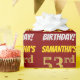 This wrapping paper design features a message like "SAMANTHA’S 53rd BIRTHDAY!", with the "53rd" having a faux/imitation gold-like colour appearance, and with the name and "BIRTHDAY" in a fun, bold font. The name can be personalised, and the background is coloured red. Wrapping paper like this could perhaps be used when wrapping birthday gifts being given to somebody in celebration of their fifty third birthday. [~Z0000204]