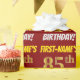 This wrapping paper design features a message like "FIRST-NAME’S 85th BIRTHDAY!", with the "85th" having a faux/imitation gold-like colour appearance, and with the name and "BIRTHDAY" in a fun, bold font. The name is customisable, and the background is coloured red. Wrapping paper like this could perhaps be used when wrapping birthday gifts being given to somebody in celebration of their eighty fifth birthday. [~Z0000204]