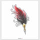 Artistically drawn, antique fountain pen embellished with dark red feather on white background.