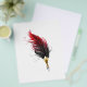 Artistically drawn, antique fountain pen embellished with dark red feather on white background.