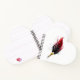 Artistically drawn, antique fountain pen embellished with dark red feather on white background.
