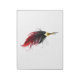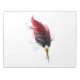 Artistically drawn, antique fountain pen embellished with dark red feather on white background.