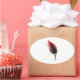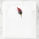 Artistically drawn, antique fountain pen embellished with dark red feather on white background.