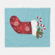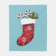 Red Festive Christmas Stocking On Blue Fleece Blanket