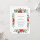 This watercolor design captures the festive spirit of a seasonal event with its vibrant botanical arrangement. A palette of deep crimson, forest green, and snowy white creates a holiday feel. The artwork features elegant poinsettias, holly, berries, pine, and eucalyptus. Natural textures are highlighted by small pinecones and white blossoms.