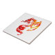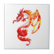 a decorative tattoo style design of a dragon, lizard or serpent in flame like red and orange colours on a ceramic tile.