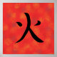 This modern poster has Japanese calligraphy for the kanji 火. It means fire. Fire in Japanese is pronounced ka. A word using this kanji is 花火 (or hanabi) - meaning firework. 火 is one of the kanji that is also means the same in Chinese. Did you know that this kanji represents one of the 5 Japanese elements?