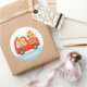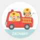 Red Fire Truck with Fire fighter Boy and Puppy Classic Round Sticker