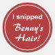 Red firetruck upsherin birthday party sticker "I snipped" with name