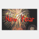 Customisable rectangular New Near Sticker with red fireworks (stylised and graphic). You can easily add text and change font, colour, size and position by clicking the customise button.