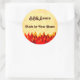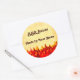 A custom canning label for your homemade BBQ, hot sauces, relishes, salsa or other flaming hot recipes with graphic art of red and orange flames at the bottom of the design on a faux parchment background.