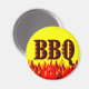 BBQ saying in a western flaming font for cooks and cookouts with graphic art of red and orange flames at the bottom of the design. Click Customise It to add your name or message.