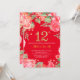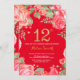 Red Floral 12th Birthday Gold Glitter and Red Invitation