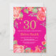 Red Floral 30th Birthday Gold Glitter and Hot Pink Invitation