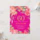 Red Floral 60th Birthday Gold Glitter and Hot Pink Invitation