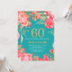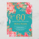 Red Floral 60th Birthday Gold Glitter and Teal Invitation