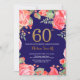 Red Floral 60th Birthday Invitation for Women. Watercolor Botanical Floral Flower. Gold Glitter. Navy Blue Background. Pink Peonies Floral Flowers. Adult Birthday. For further customisation, please click the "Customise it" button and use our design tool to modify this template.