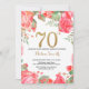 Red Floral 70th Birthday Invitation Gold Glitter