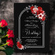 Invite your friends and loved ones to your wedding with this modern red floral black and white arch wedding invitation.
